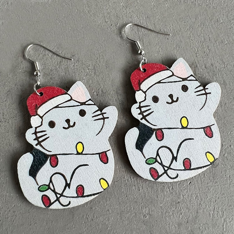Farbige helle Katze Lehrer Holz Ohrringe