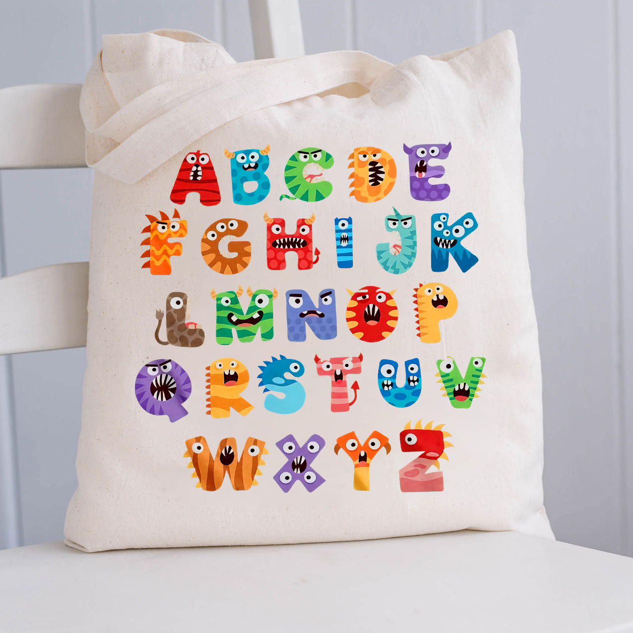 Niedliche Halloween Monster Alphabet Lehrer Tragetasche