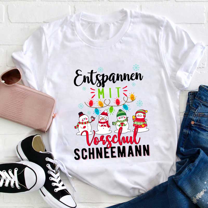 Entspannen mit Vorschul Schneemann Personalisiertes Lehrer T-Shirt