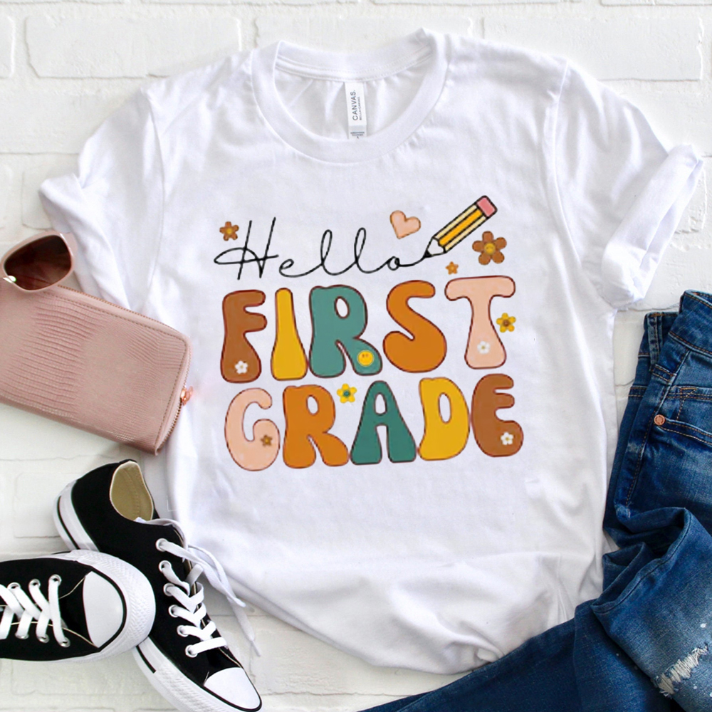 Hello First Grade Cartoon Letters  T-Shirt