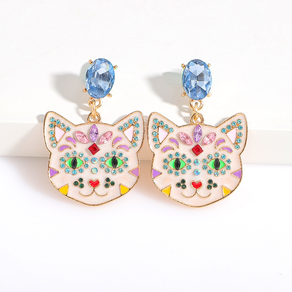 Multicolor Rhinestone Shining Cats Metal Earrings
