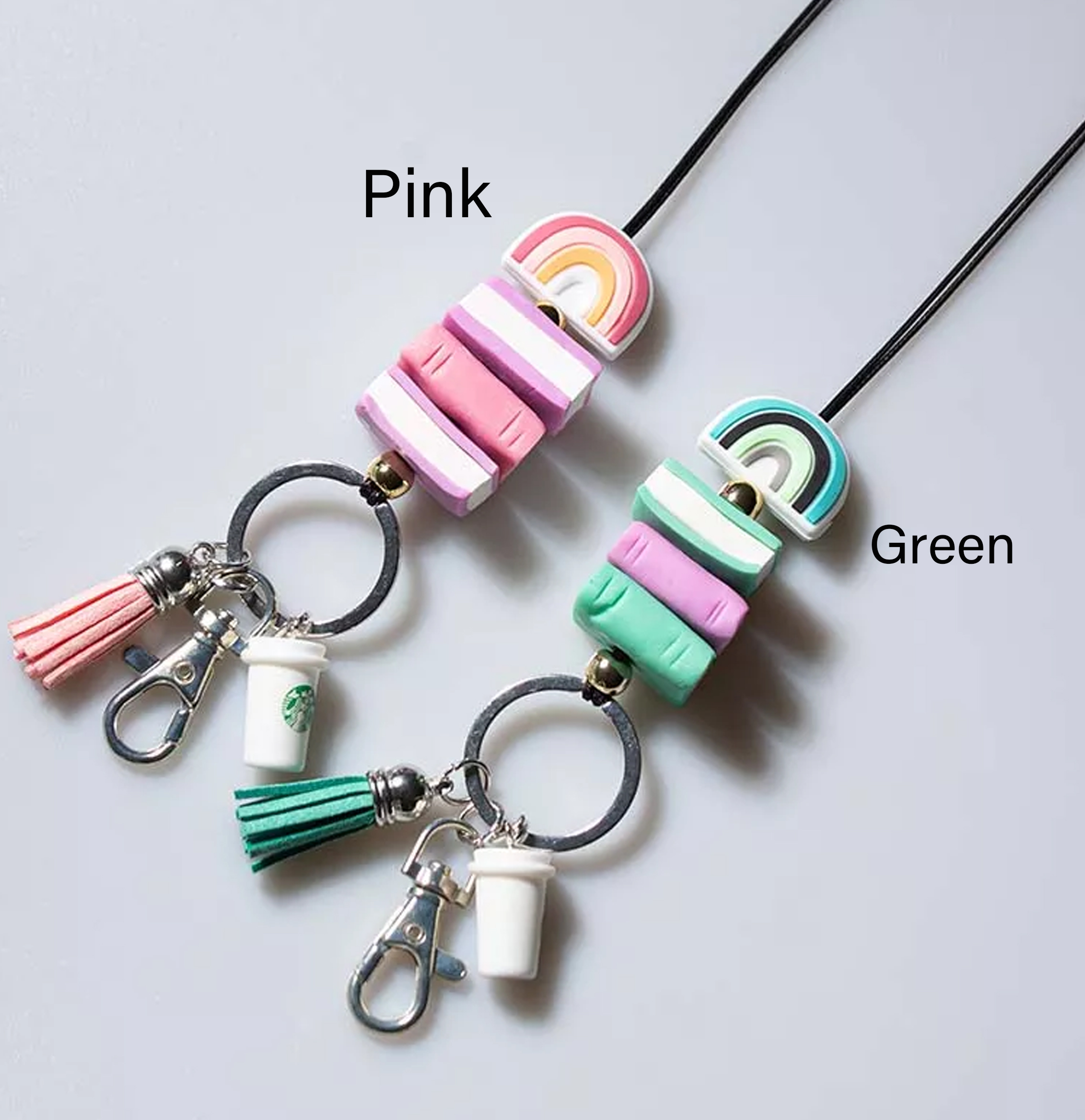 Rainbow Books Coffee Cup Tassel  Lanyard