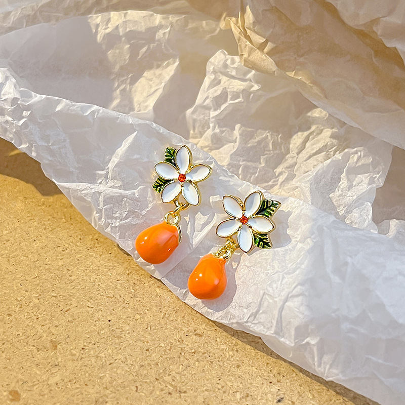 Süße Zitrus Gardenia Silbernadel Lehrer Metall Ohrringe