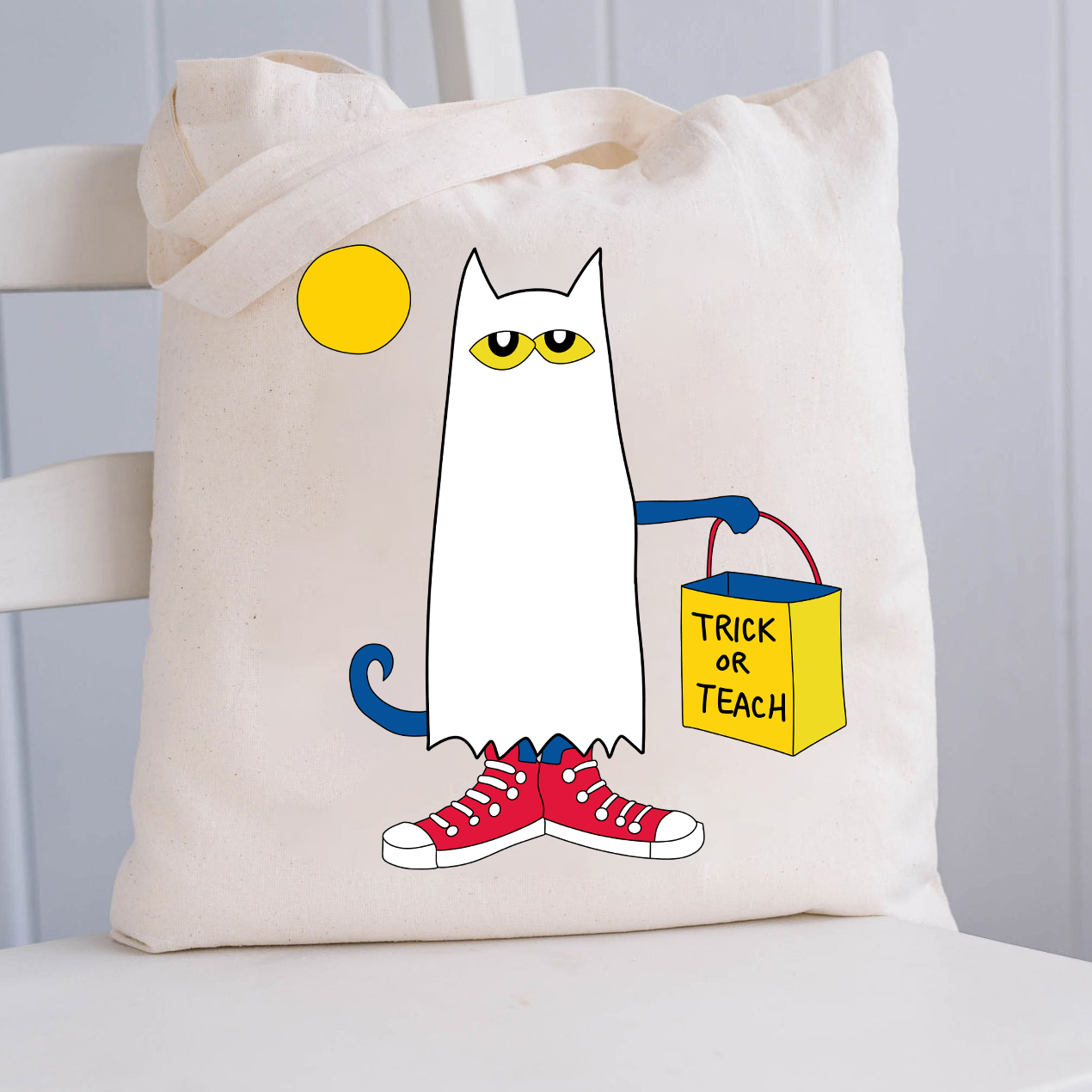 Trick Or Teach Ghost Cat Tote Bag